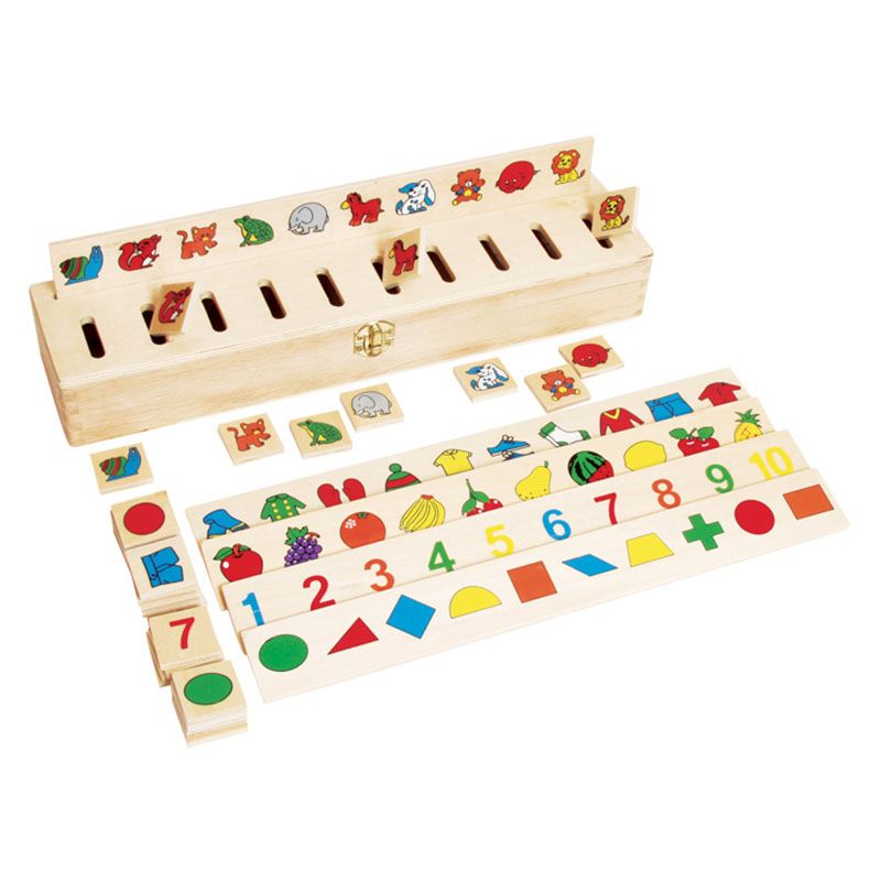 Jocul de sortare educativ din lemn constituie o activitate interesanta pentru cei mici si, totodata, un ajutor in invatarea primelor notiuni despre culori, cifre, forme, animale, fructe si articole de imbracaminte.