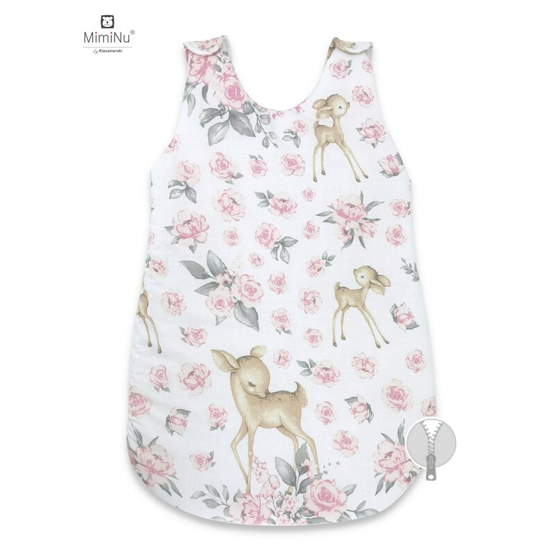 MimiNu - Sac de dormit pentru bebelusi, De iarna, Din bumbac, Cu fermoar lateral, Cu capse pe umar, 70 cm, 0 – 6 luni, 2.5 Tog, Sweet Deer Pink