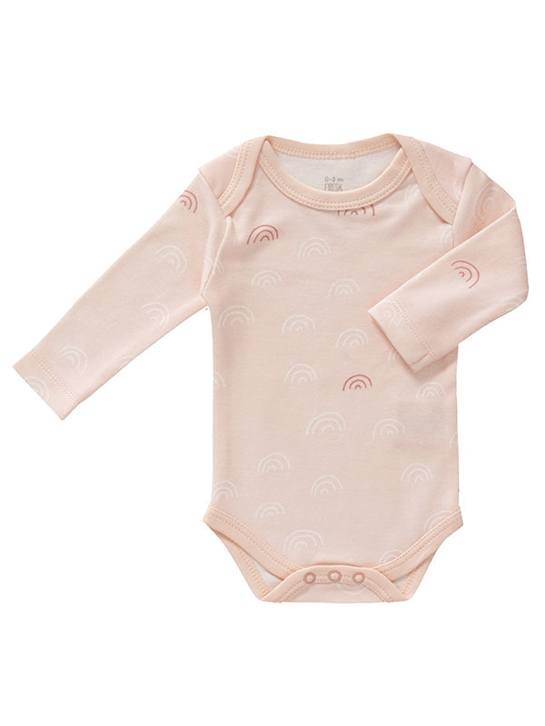 Body-ul pentru bebelusi ne incanta cu un modelul modelul sau curcubeu, roz, vesel si armonios. Materialul este usor si moale, alunecand comod pe pielea de bebelus. Ne inveseleste prin culorile si formele deosebite. Cu ajutorul body-ului Fresk, mamicile il pot imbraca pe cel mic intr-o clipa, datorita sistemului de prindere cu capse si a pliurilor din dreptul umerilor. Body-ul este foarte flexibil si nu-l incomodeaza pe cel mic in miscari, oferindu-i libertatea de a explora. Acesta se potriveste de minune cu pantalonii uni de la Fresk.Body-ul din bumbac organic 100% este un produs certificat GOTS.Body-ul este disponibil pentru bebelusi cuprinsi intre:0 si 3 luni3 si 6 luni6 si 12 luniFresk este un brand olandez recunoscut pentru produsele dedicate copiilor. Colectia lor este alcatuita din hainute placute si dulci la atingere, in culori calduroase si pline de iubire. Produsele se disting prin marca de calitate GOTS, recunoscuta la nivel mondial, care garanteaza productia si prelucrarea bumbacului organic.Sfatul Bebe Organic: Doar bumbac organic pentru bebelusi!protejeaza pielea sensibilaeste moale si delicatfara chimicale, 100% naturallasa pielea sa respirerezistent la spalare se spala la maximum 40 de grade.