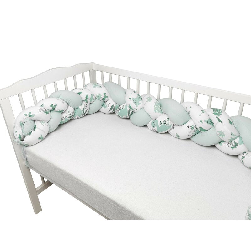 MimiNu - Protectie laterala pentru patut bebe, Tip Bumper impletit, Din bumbac, Din materiale certificate Oeko Tex Standard 100, Lungime 220 cm, Dino Mint