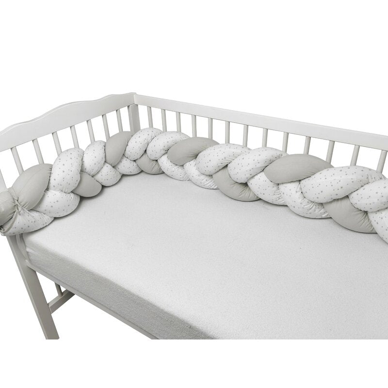 MimiNu - Protectie laterala pentru patut bebe, Tip Bumper impletit, Din bumbac, Din materiale certificate Oeko Tex Standard 100, Lungime 220 cm, Mini Gray Stars