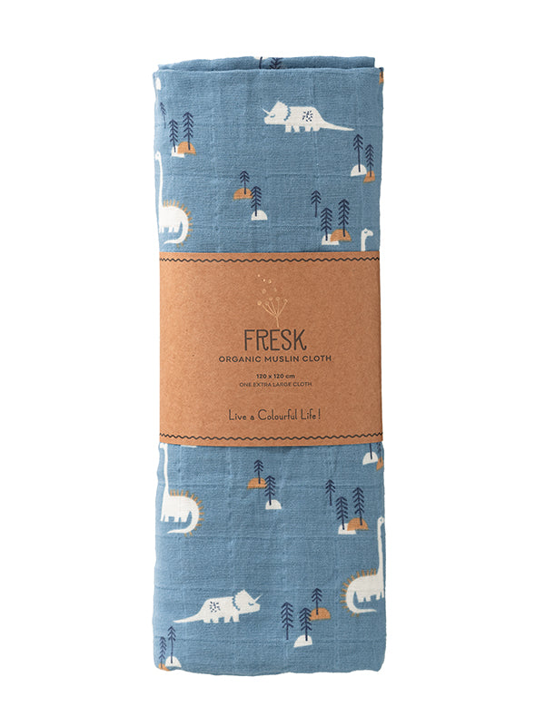 Patura de muselina are o dimensiune foarte generoasa, 120x120 cm, fiind extrem de utila si practica mai ales pentru invelit, infasat sau protejat bebelusul de razele soarelui. Este realizata dintr-un material respirabil, usor absorbant si extrem de moale, cu un model simpatic, cu dinozauri. Aceasta este fabricata din bumbac organic, respectand cele mai inalte standarde de calitate si siguranta pentru pielea sensibila a bebelusilor.